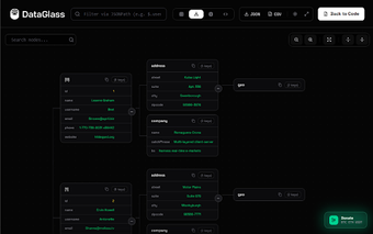 DataGlass é uma extensão gratuita para Chrome que transforma a maneira como desenvolvedores e engenheiros de QA interagem com respostas JSON. Com uma interface limpa e minimalista, o programa oferece um ambiente local focado, permitindo inspecionar, editar e visualizar dados de forma intuitiva. Entre suas principais funcionalidades, destacam-se o Tree Canvas para mapear objetos aninhados, a visualização em Tabela para escanear rapidamente grandes arrays, e Diagramas para entender relacionamentos. Com o modo de Código, é possível editar diretamente as respostas JSON, tornando o processo muito mais eficiente.